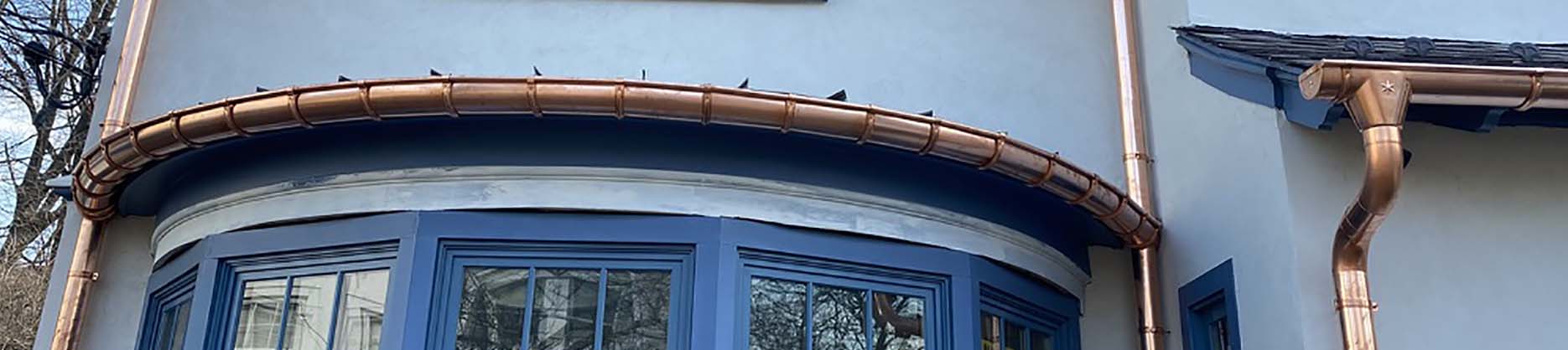 George’s Seamless Gutters specializes in the design and fabrication of radius gutters in both copper and aluminum. Radius gutters are most commonly completed in the K-style or Half-round gutter profile, tracing the curved lines of your home with elegance and precision.
